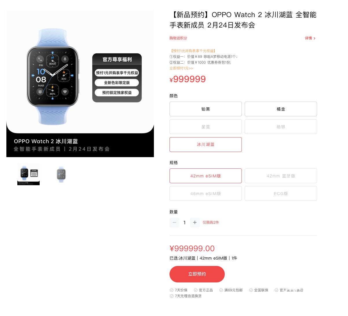 目前还不知道OPPO Watch 2冰川湖蓝配色还有哪些细节上的改动,其最终价格也将在24日晚间的发布会上正式公布。