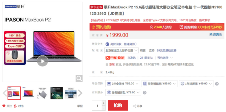 目前攀升MaxBook P2笔记本正在攀升京东自营旗舰店预购中,预约价1999元,可以说是性价比天花板了,还不快冲?