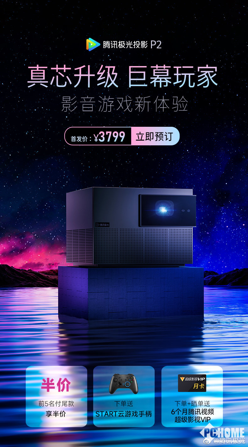 3月3日,@腾讯极光官方微博发布消息,正式推出全新的腾讯极光投影P2,售价3999元,首销期间优惠200元,到手仅需3799元。到手赠送腾讯START云游戏定制手柄、腾讯激光会员半年卡以及12其免息分期。