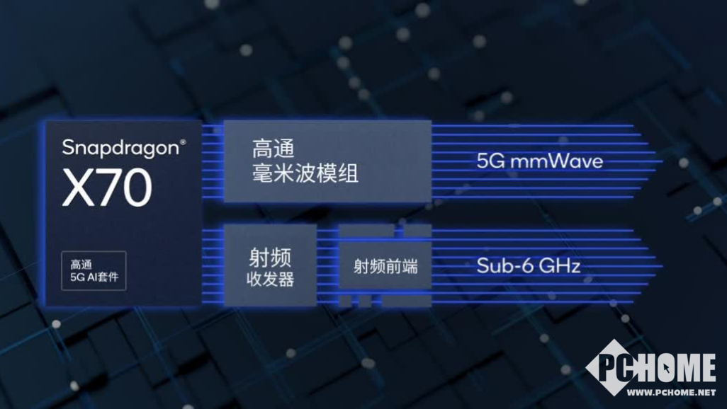 据了解,骁龙 X70在调制解调器及射频系统中引入全球首个5G AI处理器,利用 AI能力实现突破性的5G性能,包括10Gbps 5G下载速度、更快的上传速度、低时延、更好的网络覆盖和能效,一定程度上缓解或者解决5G网络给手机等移动设备带来的功耗问题。