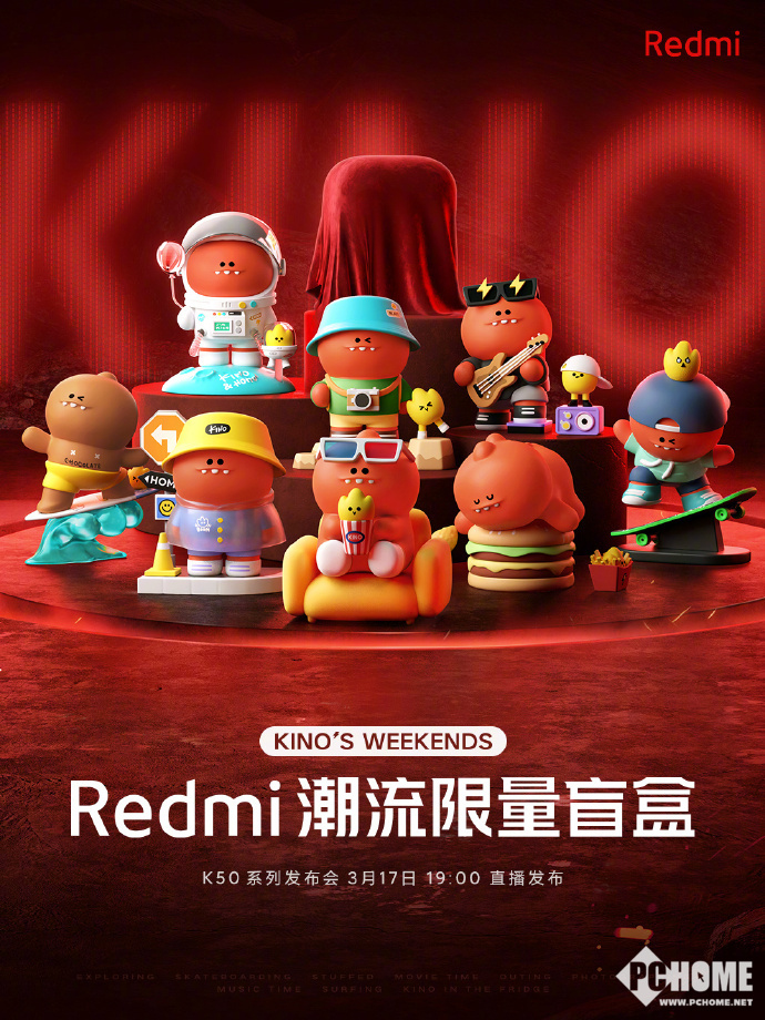 Redmi官方发布消息称,Redmi品牌吉祥物Kino & Hoho将化身Redmi潮流限量盲盒,共有9款狠萌形象,限量40000个。