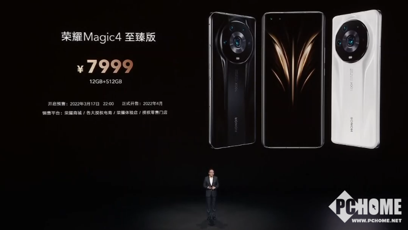 【PChome手机频道资讯报道】2022年3月17日晚,荣耀召开了Magic4系列旗舰手机的国内新品发布会,会上共推出了三款手机新品,分别是Magic4、Magic4 Pro、Magic4 至臻版。作为荣耀在2022年的开年力作,Magic4系列基本延续了前代的外观设计,在细节体验方面进行了非常全面的升级,新机最快将于3月25日开售,起售价为3999元。