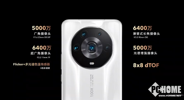 参数上,荣耀Magic4 至臻版更是将镜头矩阵拉升到极致,主摄升级到1/1.12英寸超大底5000万像素定制传感器,光圈达到f/1.6,并采用定制8P镜头设计;超广角摄像头采用业界首款双自由曲面镜头,规格为6400万像素7P镜头;并增加光谱增强摄像头,以超越人眼可视光谱范围的感光能力收集更复杂的真实世界信息。高规格的摄像头模组让照片和视频轻松驾驭人像拍摄、夜景风光,高清度视频等,带来更加明亮清晰的成像体验。