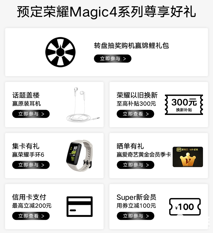 与此同时,在苏宁平台预定还可以享受众多福利。购机下单即可获得苏宁锦鲤礼包,话题盖楼抽原装耳机、集卡抽荣耀手环5、晒单送爱奇艺黄金会员集卡等等。另外如果你是Super新会员可以使用优惠券立减100元,部分银行的信用卡支付订单全款还可以享受立减优惠。总之,相比在官网订购机器,电商平台的福利更加多样,用户可以根据自己的需求进行挑选。