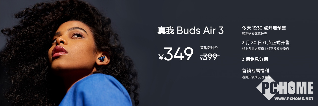 真我Buds Air3的售价为399元,首销限时价349元,跟真我GT Neo3一起组合购买或者真我手机老用户购买,还可以领取30元优惠券,特惠价319元,在3月22日15:30全渠道开启预售,3月30日0点正式开售