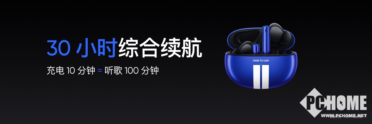 真我Buds Air3搭载546mAh大容量电池,可以带来30小时的综合续航表现,耳机单次可播放音乐长达7小时,还采用了快充技术,耳机闪充10分钟,可持续使用100分钟。真我Buds Air3支持双设备连接,如果用户在使用平板看剧时手机突然来电,耳机也可以直接转到来电场景通话,轻松切换,应对自如。此外,真我Buds Air3还支持智能弹窗、智能触控、通透模式和realme Link等多种智能体验。