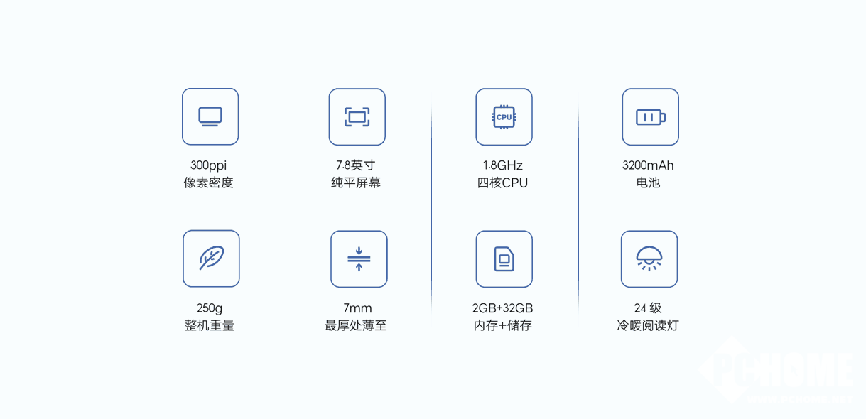 小米多看电纸书Pro II采用了一块7.8英寸的墨水屏幕,分辨率为1872x1404,像素密度达到了300ppi,墨水屏的无频闪特性使得其成为目前最接近真实纸张阅读体验的屏幕。同时小米多看电纸书Pro II还配备了24级双色温钱广,为静态无频闪的墨水屏进行辅助照明,冷暖双色的调节能力也使得其可以满足更多的场景需求,在照亮屏幕的同时依旧能够保护眼睛。加上250g的整机重量和7mm的机身厚度,小米多看电纸书Pro II可以做到随身携带而没有任何负担。内置的RK3566高性能四核64bit低功耗CPU搭配2GB+32GB存储组合,使得系统响应速度提升109%,日常使用更加流畅。