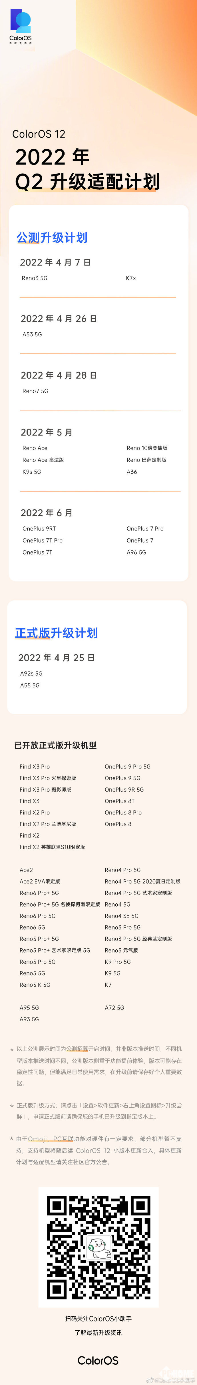 根据官方提供的信息,目前开放升级到ColorOS 12的手机分别为——
