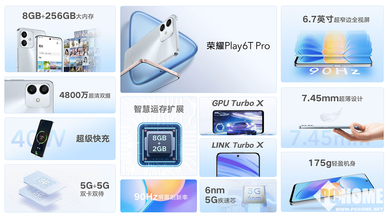 4月7日晚,荣耀正式发布了千元新品荣耀Play6T Pro和荣耀Play6T,作为定位千元的5G手机,荣耀Play6T系列全系标配8GB RAM大内存,并且均提供了256GB大存储规格。让千元手机用户也能享受大存储带来的畅快。