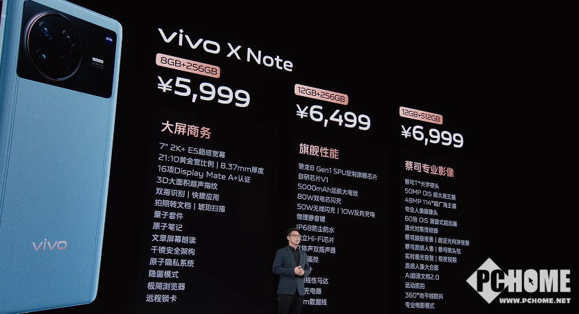 【PChome手机频道报道】vivo在4月11日发布了vivo X Note巨屏旗舰,这款手机有着7英寸2K+巨屏,是市面中唯一的一款商务定位旗舰机,该机有着顶级的硬件规格,并且具有硬件级别安全防护功能支持,满足商务人士的使用需求,能够成为生产力工具。