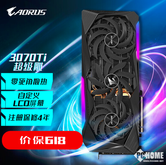 温度是直接影响显卡稳定与寿命的关键因素,技嘉GeForce RTX 3070 Ti MASTER 8G超级雕显卡采用了2个115mm和1个100mm风扇,风爪静叶、进气格栅散热设计和正逆转风扇的搭配,可以让风压完整地覆盖热鳍片,达到零死角散热。一体化金属强化背板能帮助散热和提供强度支撑,LCD显示屏可自定义显示信息,还能通过RGB FUSION2.0软件调整灯光效果,竞技氛围拉满,京东售价5999元。