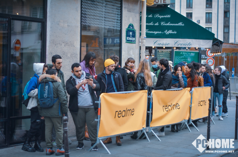 realme法国粉丝在巴黎快闪店外排队体验真我GT2系列产品
