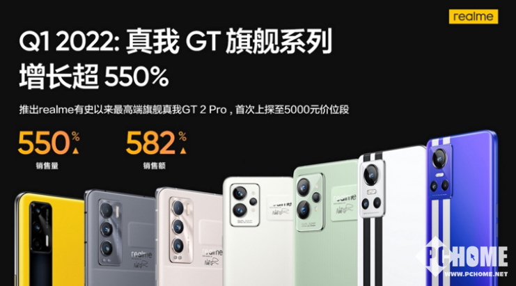 欧洲市场的成功表现也为realme在高端市场的销量带来了新的驱动力,2022年Q1季度,真我GT旗舰系列取得了销量同比增长550%,销售额同比增长582%的双重突破。在欧洲的销量增长了90多倍,在中国同比增长474%。其中,全新高端旗舰GT2系列和GT Neo系列是最主要的增长点。