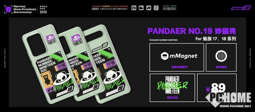 专为魅族手机定制的妙磁手机壳也正式换上了 NO.19 涂装,炫酷满满的同时,此次 PANDAER NO.19 妙磁壳还支持魅族 18 与 17 系列旗舰机型,未来还将有多款为魅族用户提供的,集合了 IML、妙磁、抗菌三大特性的全新壳类产品上线。