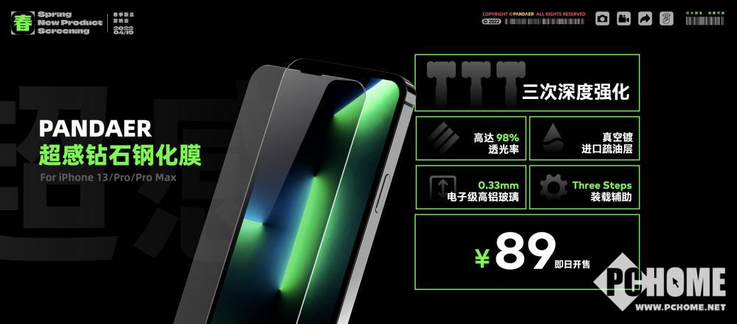 此次放映会,PANDAER 还为我们带来了 PANDAER 首款屏幕保护产品——PANDAER 超触感钻石膜,它支持 iPhone 13 Pro / iPhone 13 Pro Max,且拥有观感、触感、安全感三大维度上的出色表现。PANDAER 超触感钻石膜采用超高透光率电子级高铝玻璃,仅 0.33mm 薄,拥有高达 98% 的透光率,搭配进口的高密度疏油层与真空镀膜工艺,让丝滑流畅的触感体验在 PANDAER 超触感钻石膜上得以完美呈现。并且它还有着高强度抗压能力,无论是边缘还是整体,都能带来十分亮眼的抗压、抗击打表现。不仅于膜本身的强悍,PANDAER 还为其定制了专属辅助工具,轻松三步即可完成贴膜。