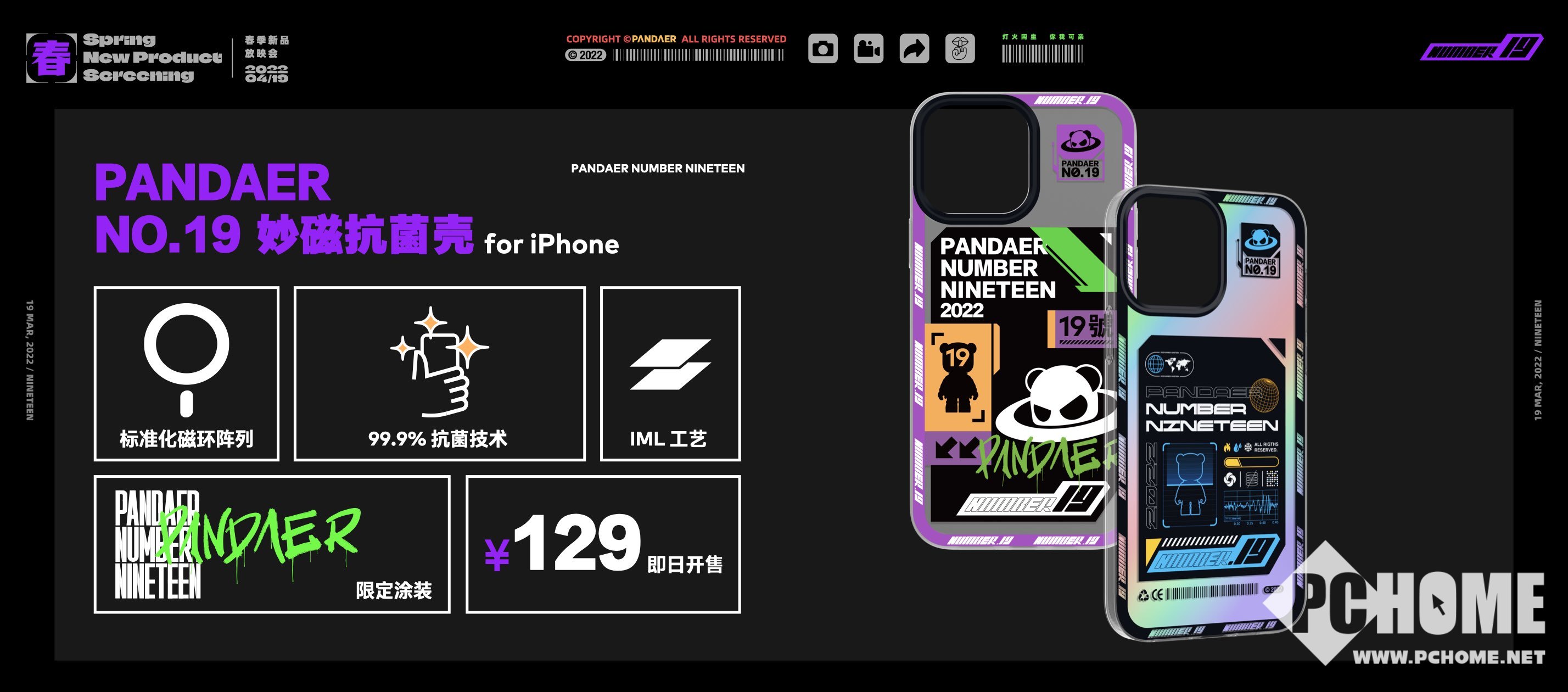 作为这个全新主题的首款新品,iPhone 系列 PANDAER NO.19 妙磁抗菌壳与魅族旗舰系列 PANDAER NO.19 妙磁壳正式亮相。与之一同推出的 PANDAER Guard+ 全新抗菌技术也被首次实装在 iPhone 妙磁抗菌壳上,它还具备 IML、妙磁两大特性,并且也有着极具未来感和科幻风的 NO.19 主题涂装。