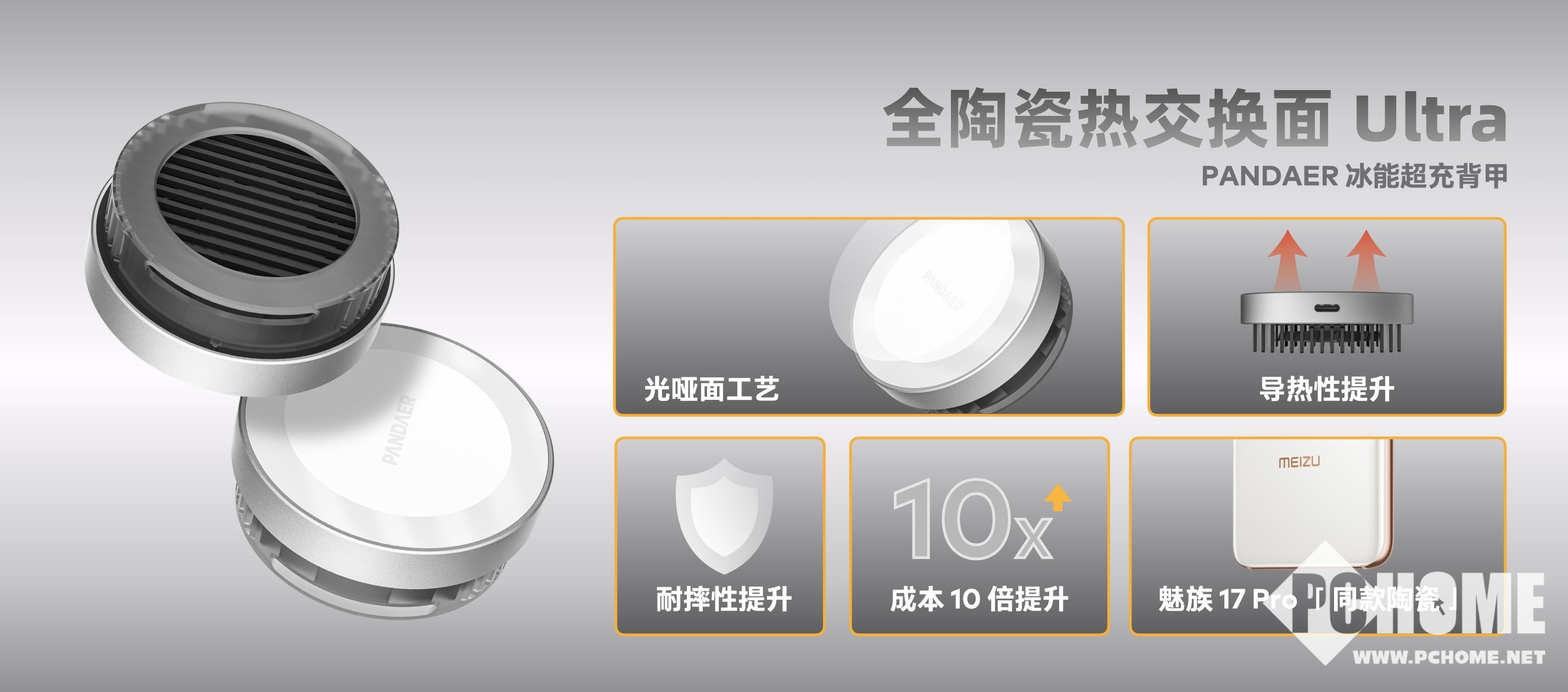 自新生力量魅族冬季新品发布会上推出以来,PANDAER 潮电产品满受欢迎,首先是 PANDAER 冰能超充背甲,这款首发制冷和充电双重功能的妙磁产品在打磨阶段,PANDAER 材料工程师为其全陶瓷热交换面进行了材料与工艺的升级,采用了高级别精密陶瓷并优化光哑面处理工艺,使陶瓷质感更加出色,导热性和耐摔性也有显著提升,这就是全新升级的全陶瓷热交换面 Ultra。