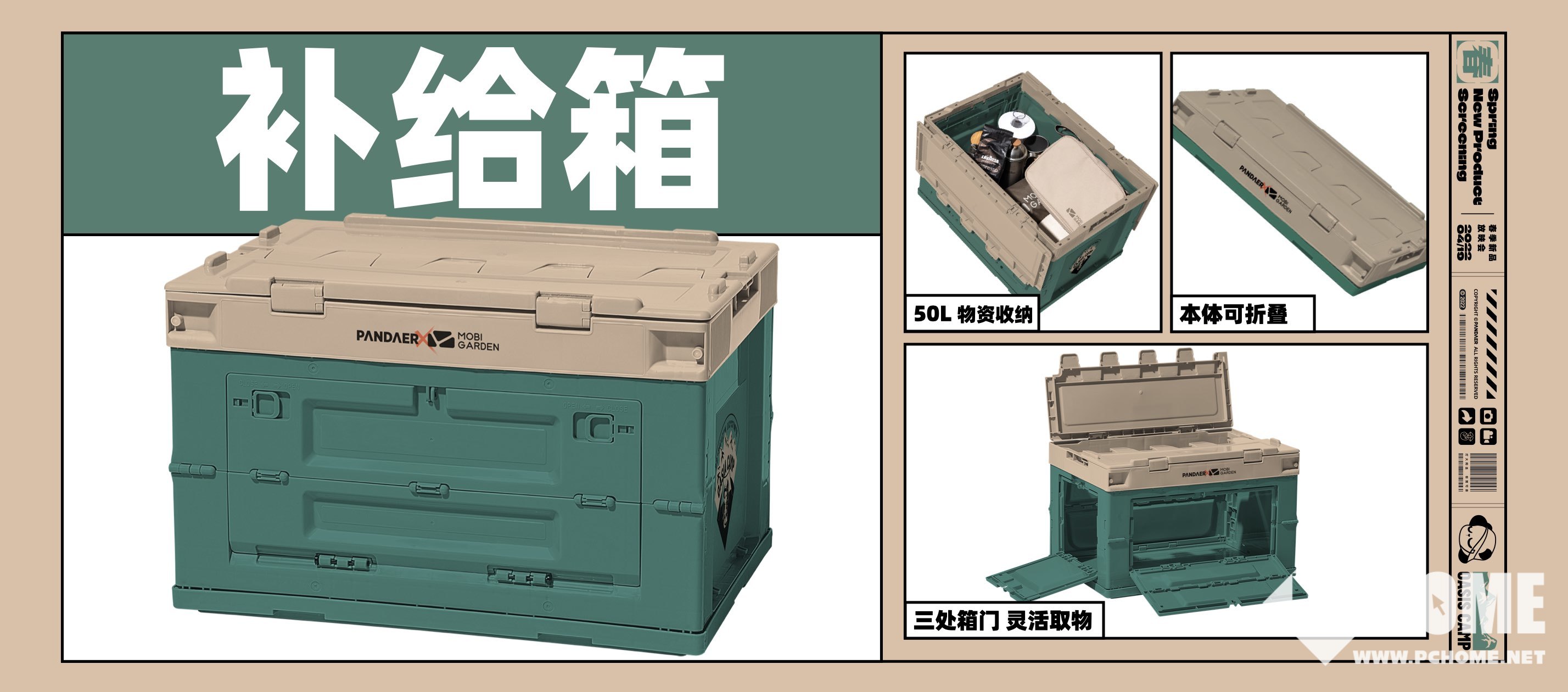 魅族 PANDAER X 牧高笛「绿洲」补给箱 在外观上拥有十分温馨且美观的绿洲色与暖沙色的拼色,在功能性上也尤为突出,它能够提供 50L 的超大容量,同时还能在不使用时进行折叠收纳;使用期间可以通过顶部、左侧、正侧三个取物口快速完成物资补给。