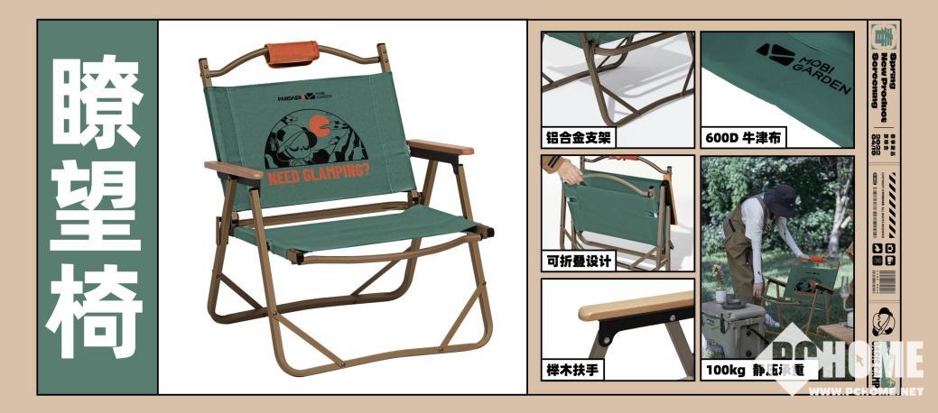 魅族 PANDAER X 牧高笛「绿洲」瞭望椅 外观源自于 PANDAER 与牧高笛的联合设计,它采用类克米特椅的结构,并结合现代化改造,使用更轻量级且强度更高的金属材质作为主框架,同时通过布质与木质结构,将克米特椅的舒适性得以保留。