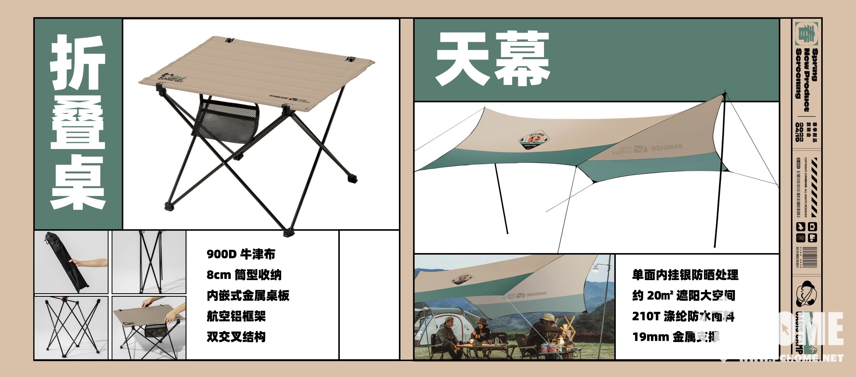 除了三款特色产品,魅族 PANDAER X 牧高笛「绿洲」天幕 与魅族 PANDAER X 牧高笛 「绿洲」折叠桌也是户外露营的关键拼图。它们同样采用了轻量化且高强度的金属框架,折叠桌仅需 15 秒便可轻松完成搭建,并且天幕采用的优质耐磨涂银面料也能提供防晒、防雨水、防紫外线且兼顾透气的特性。