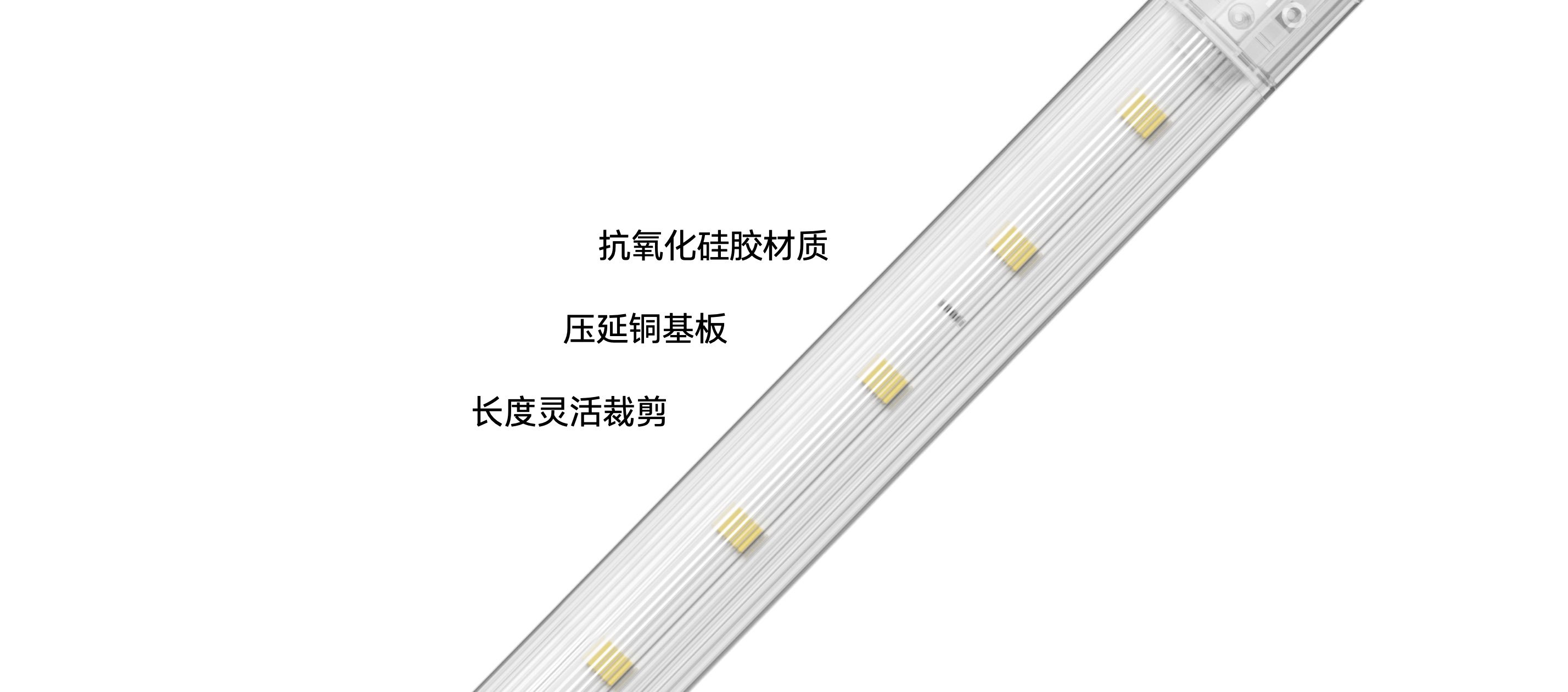 lipro E 系列 LED 灯带采用抗氧化硅胶材质,使透光率达到 95% 的同时,还能有效改善常规灯带氧化发黄问题,保障如然之光的持久品质体验。并且 lipro E 系列 LED 灯带通过压延铜基板,显著改善一般灯带存在的收尾亮度差异问题,也能根据实际使用需要对灯带长度进行灵活裁剪。
