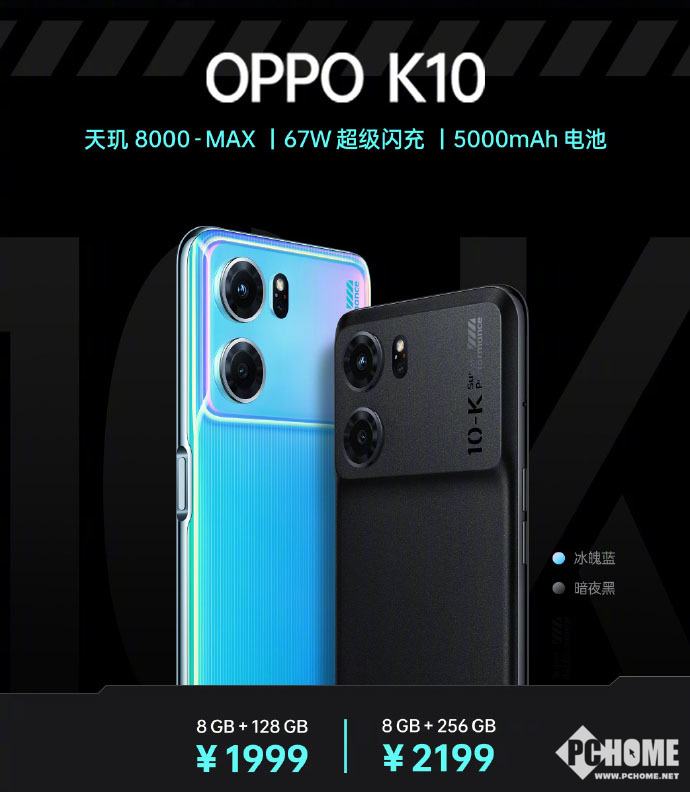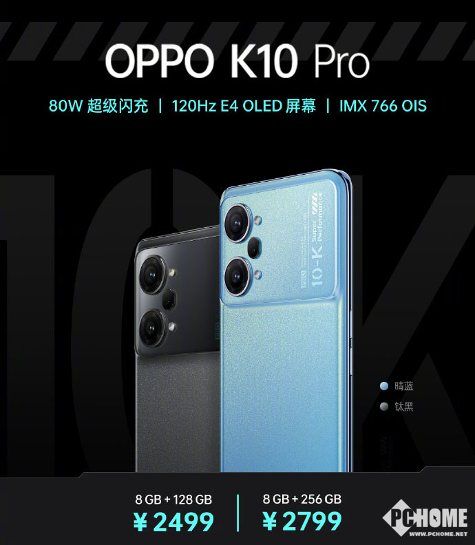 【PChome手机频道报道】OPPO K10系列手机在4月28日10点正式开售,OPPO K10和OPPO K10 Pro两款手机各具特色,并提供多个存储版本。OPPO K10 8+128GB版本售价1999元、8+256GB版本售价2199元、12+256GB版本售价2499元。OPPO K10 Pro 8+128GB版本售价2499元,8+256GB版本售价2799元,12+256GB版本售价3199元。