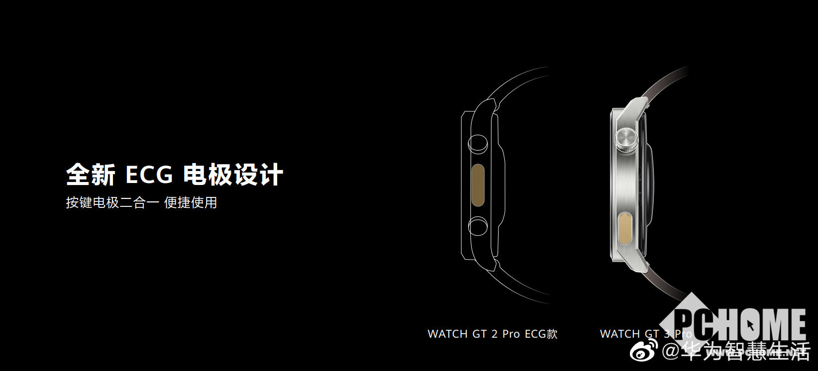 华为Watch GT3 Pro钛金属款采用了钛金属表壳,蓝宝石玻璃镜片和陶瓷后壳。钛金属款配置有1.43英寸AMOLED屏幕,陶瓷款则配备1.32英寸AMOLED屏幕。GT3 Pro系列全系标配全新设计的ECG按键,按键面积相较于上一代产品更小,同时测量精度更高。
