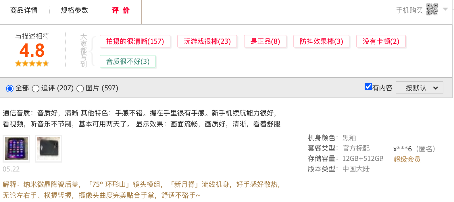 OPPO Find X5 Pro在消费者市场拥有极为出色的评价。以天猫平台为例,其好评度为4.8,大部分消费者都给以五星好评,重点肯定Find X5 Pro的样张和性能表现。