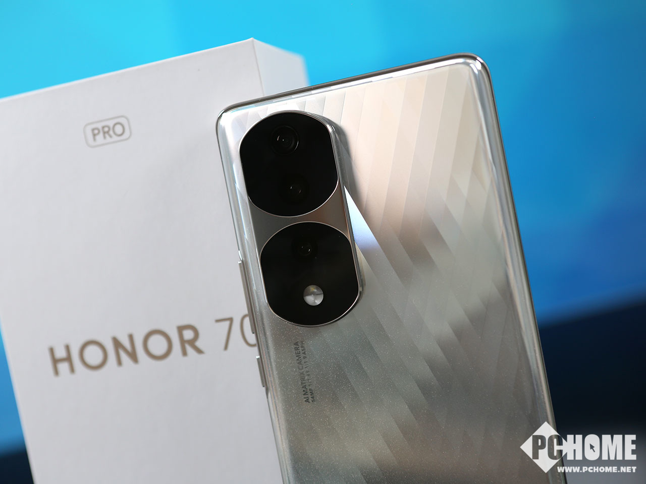 荣耀70 Pro+以四曲屏设计为基础,运用行业首创的四曲面贴合方式,打造了行业首款全对称四曲面设计。手机正面具有对称式的曲面造型,R角过渡自然,屏幕视觉效果非常美观。自成风格的双镜设计再次进化,加入扇形设计元素后,对称效果更为突出,设计更为优雅。