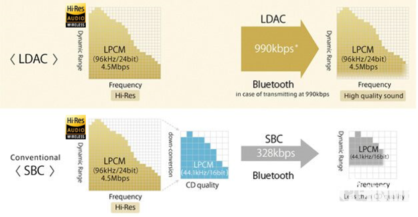 LDAC传输率是传统SBC编码器(328Kbps)的3倍