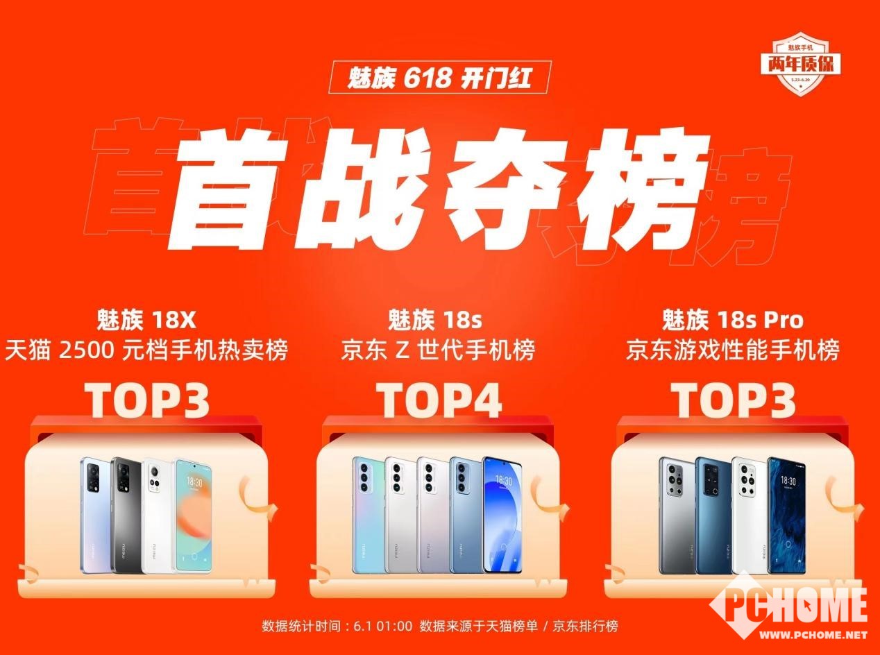 【PChome手机频道资讯报道】昨晚618大促活动正式开启,魅族的相关活动也同步上线,根据官方数据,在短短四小时的首日促销活动中,魅族多款产品便拿下多平台优异战绩,其中魅族18X斩获天猫2500元价位段热卖榜TOP3、魅族18s荣登京东Z世代手机榜TOP4、魅族18s Pro夺得京东游戏性能手机榜TOP3。