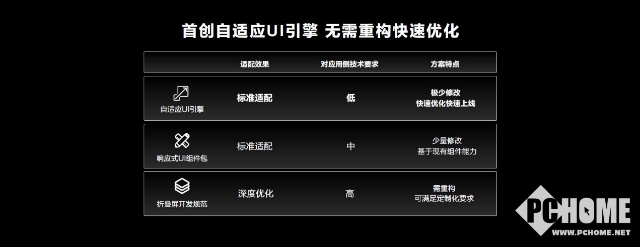 华为Mate Xs 2首创自适应UI引擎,通过自学习获取原有布局信息,针对大屏显示重新优化布局,如文字从折叠态两行显示优化为展开态一行,重新排版布局、采用同色系元素智能填充、图片居中等方式让画面协调美观。而技术上,开发者无需重新开发,只需要简单的修改,就可快速优化快速上线,方便第三方应用接入。