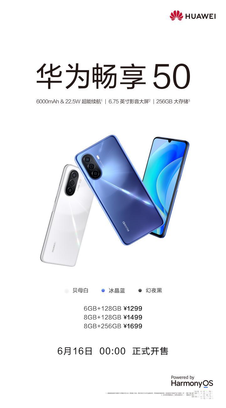 华为畅享50目前已正式开售,6GB+128GB售价1299元,8GB+128GB售价1499元,8GB+256GB售价1699元。同时,华为方面还准备了618期间全程保价,大额优惠券秒杀等丰富活动。