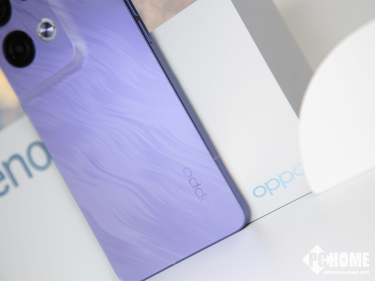 通过多层纹理工艺,让 Reno8 系列“鸢尾紫”在变换观看角度时便呈现出流动与变幻感,花影也具有层叠的景深效果。此外还加入了增亮镀膜,使得背板的亮度进一步提升,让流动的花瓣光影更为梦幻。