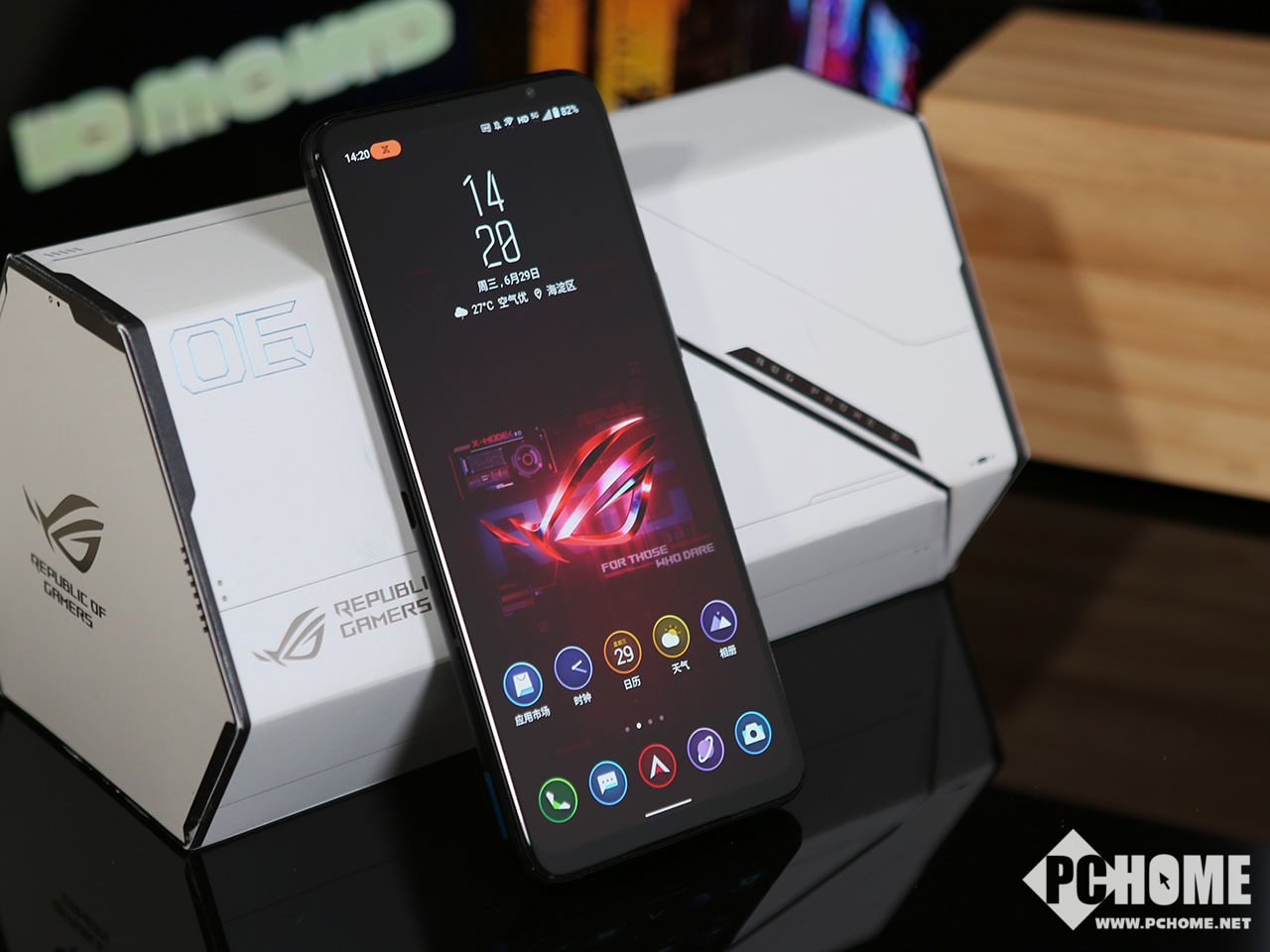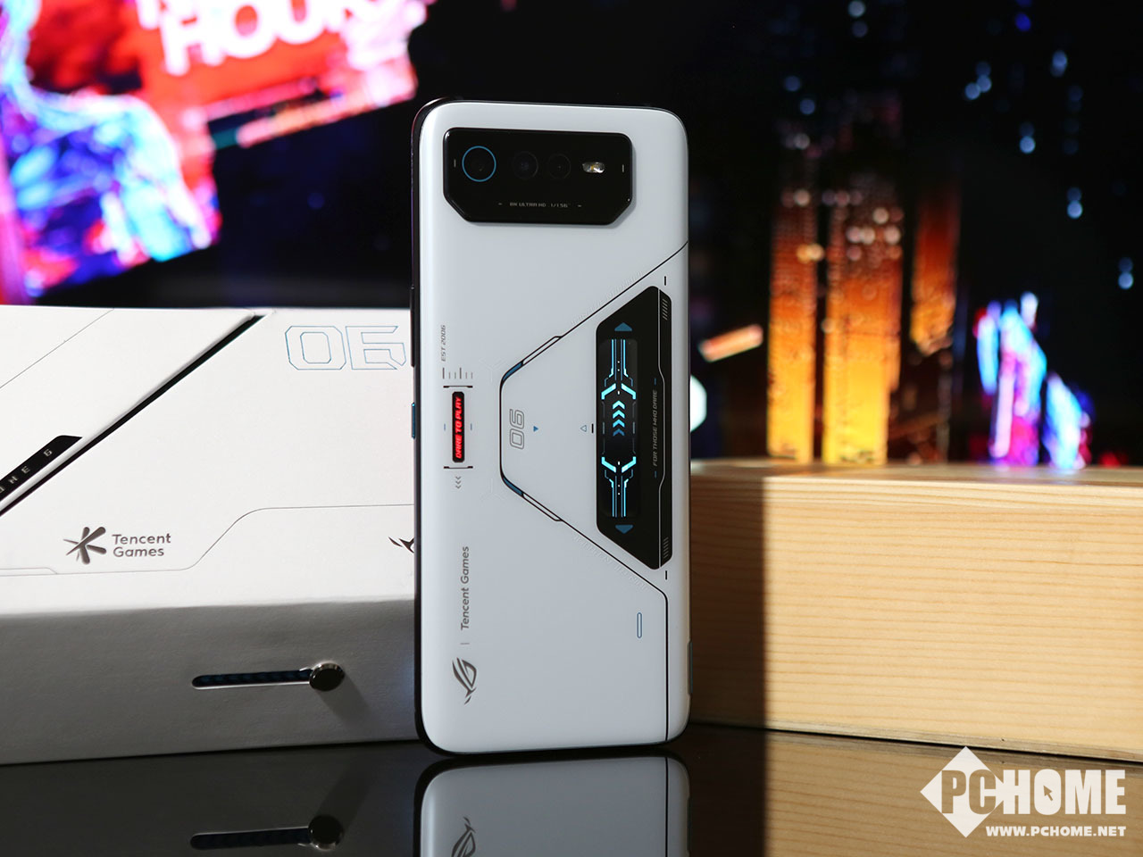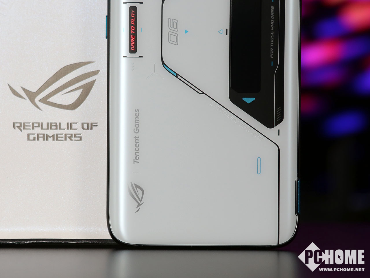 【PChome手机频道图赏】腾讯ROG游戏手机6 Pro在设计上注重游戏体验细节,造型与游戏操控感都能让玩家群体感到满意。机身采用一块平整的双曲面弧形盖板,通过线条勾勒出炫酷的科技感,符合人体工程学设计,持机手感舒适。提供了专门的呼吸灯以及炫彩个性视窗,有着非常炫的灯厂效果。