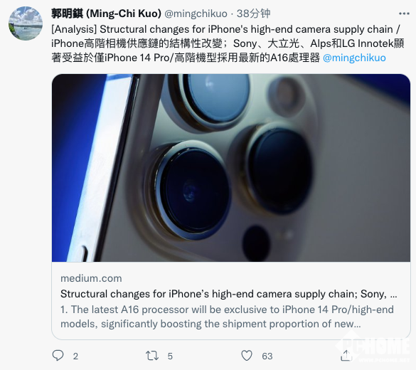 郭明錤透露,不光Phone 14 Pro以及iPhone 14 Pro Max会采用A16处理器,iPhone此后的产品策略,都将如此,也就是只有高配版产品配备最新款的处理器,而低配版的iPhone仅配备老款处理器。