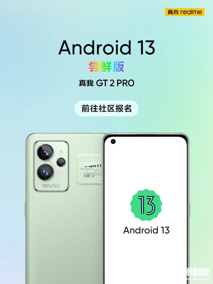 2022年8月4日,realme官方正式放出了GT2 Pro的Android 13尝鲜版适配,目前该适配已经开启尝鲜报名,首批500人,报满为止。