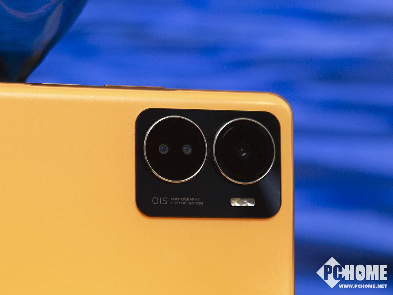 镜头区域采用双环设计,乍看之下会感觉手机使用了两颗大底主摄,视觉效果相当震撼。黑色底座部分有玻璃蚀刻纹理,迎光下具有四散的光芒纹理,整个区域让iQOO Z6具备了极高的辨识度。