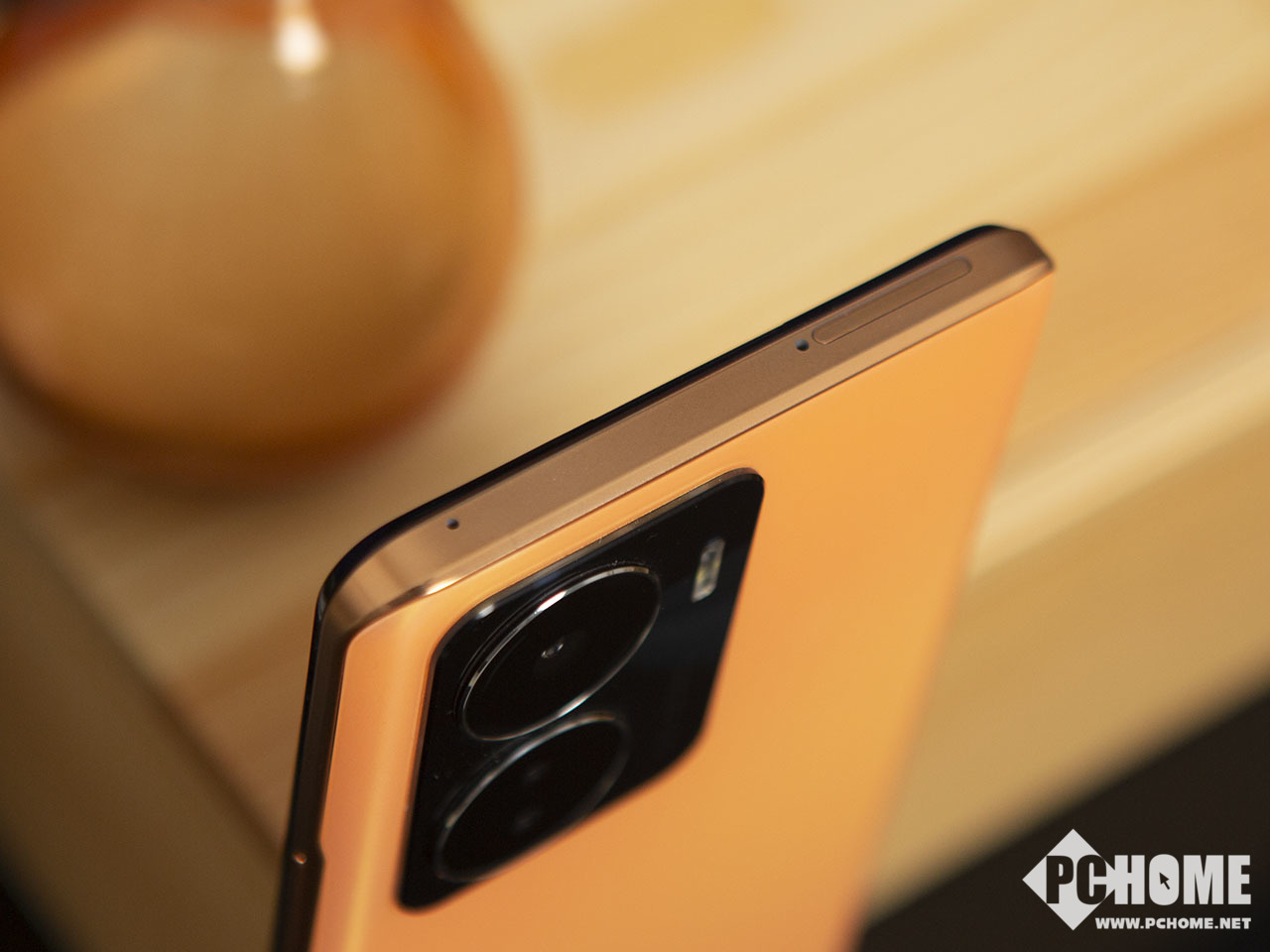机身采用第二代星光AG工艺,通过表面使晶体的有序排列散发光芒,反光视觉效果柔和,如同夜间的银河一般。我们手中的这款金橙配色,是iQOO手机的经典配色版本了,其颜色上比较浅,有更具活力的年轻化效果。机身表面的手感顺滑,并且具有极高的指纹耐性。