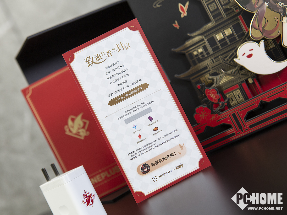 一加Ace Pro原神限定版采用了礼盒式包装,内含多种游戏周边和定制配件。比如卡针就被设计成了胡桃专属武器护摩之杖的造型,附赠的冰肤散热保护壳,也是满满的引蝶座主题,此外还有桌面摆件、立绘海报、表情贴等丰富周边。