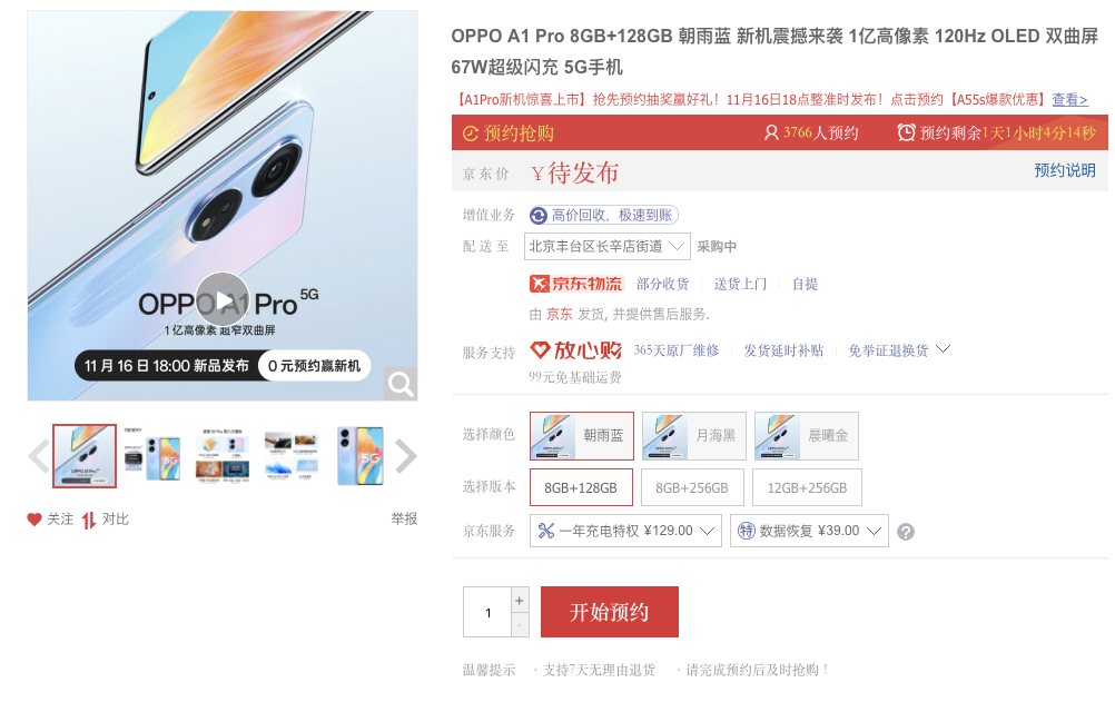 OPPO A1 Pro将于11月16日晚18点正式发布,目前已经在线上平台和线下门店开启预约,相信这款产品也将为OPPO的A系列注入新的活力,成为又一部热卖机型。
