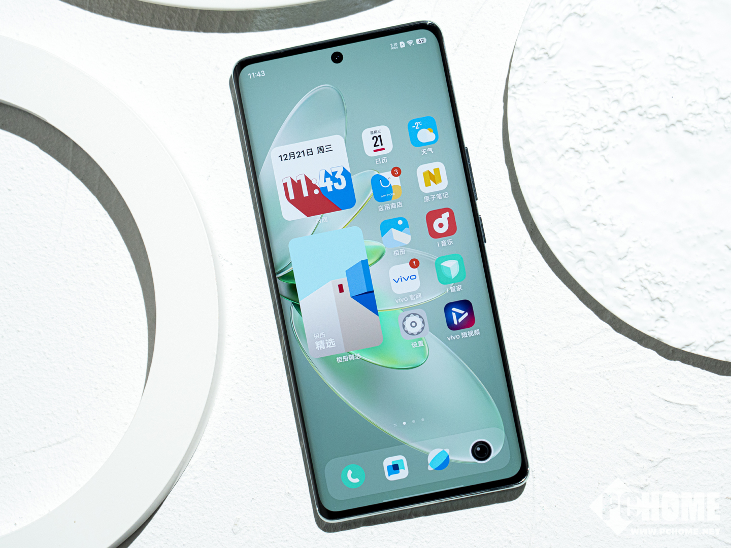 正面屏幕上,vivo S16系列全系配备6.78英寸10亿色超感屏,屏幕分辨率FHD+级别,支持最高120Hz刷新率,屏幕上下黑边分别减窄17%和35%,显示效果极具沉浸感。R角运用60度微曲过渡,边缘握感舒适不扎手。