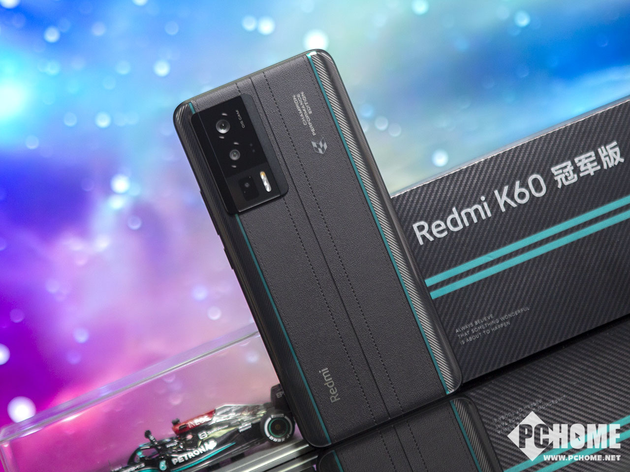 Redmi K60冠军版采用独特的碳纤维纹理素皮拼接设计,造型上与Pro版的玻璃机身类似,但中间的主机身材质使用高端素皮拼接,不仅有着极佳的质感,而且手感优秀并不沾指纹。两边点缀凯夫拉纹理,充分展现出赛道的速度感。