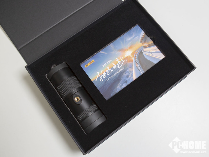 邀请函包装盒设计简约,内有一张发布会官方明信片,还有一个长筒型的赠品,它肯定在暗示着某项新机功能,甚至可能是真我11系列的主打新功能。