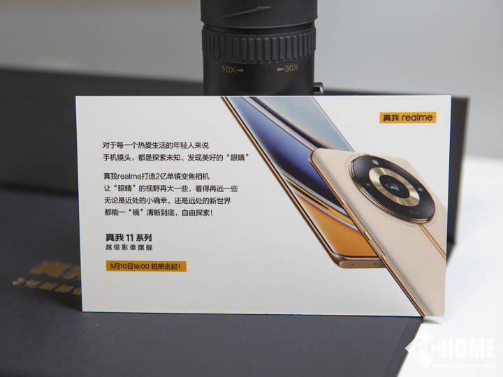 realme官方的小礼品,则是一个手持单筒望远镜,其支持10X-30X的变焦范围。结合realme方面对单镜变焦相机的描述,我们猜测其主摄支持像素切割的方式来实现变焦。鉴于主摄高达2亿像素,即便在切割两次后,依然能够实现1:1的像素对应,至少就提供了4X无损变焦。在数码变焦倍数上,望远镜中标称的30X,或许就是真我11系列的最大变焦能力了。