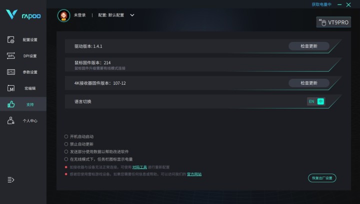 三:下载安装包到本地之后,安装完之后,打开驱动。检查更新鼠标、鼠标接收器的固件,确保升级到最新版本。