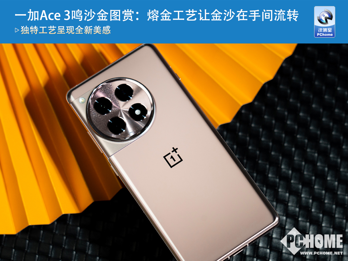 一加Ace 3的鸣沙金配色采用了全新的熔金玻璃工艺,使用具备高折射率与高吸收率的镀膜材料呈现出通透的玻璃质感和金属光泽,配合新一代的丝绸玻璃工艺则可以在不同的角度下呈现出不同的色彩效果。