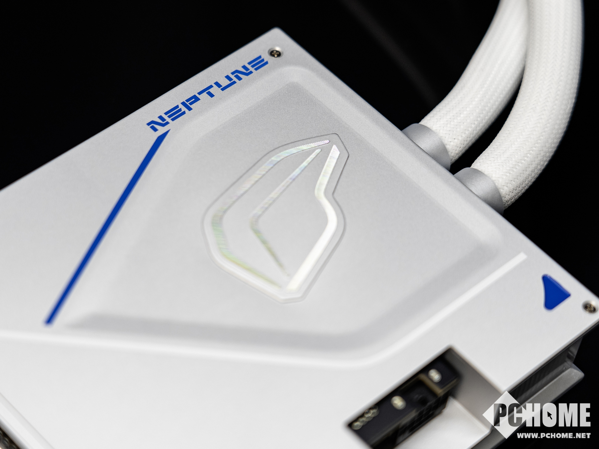 iGame RTX 5080 Neptune还在设计中巧妙融入了两处灯组,贯穿式流线灯带与冰蓝晶体相映成趣,营造出个性化的氛围感。