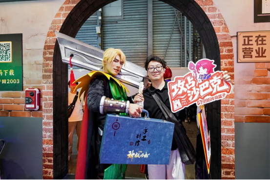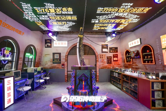 996传奇盒子展区堪称本届ChinaJoy的“情怀担当”,不仅外部复刻还原了传奇游戏中经典的沙城城堡,内部还打造了巨型传奇屠龙刀、03年传奇网吧、传奇商店等区域。木质桌椅、红砖墙面、老式电脑等元素,精准还原了二十年前网吧的经典场景,让不少老玩家一踏入展区便倍感亲切。那些年家用电脑尚不普及,无数玩家正是在这样的环境中,与兄弟一同攻沙、彻夜鏖战,展区里刻意做旧的墙壁、复古海报,仿佛将时光拉回那个热血沸腾的年代。