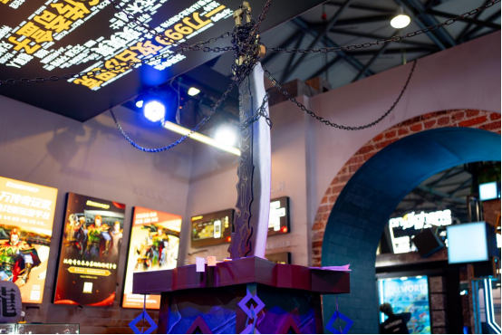 展区中央,近两米高的经典屠龙刀雕塑尤为吸睛,成为玩家打卡合影的热门地标。游戏试玩区内,海量热门传奇特色玩法汇聚,涵盖经典的战士、法师、道士“铁三角”组合,以及创新的副本挑战、PK竞技模式,玩家可尽情领略传奇游戏的独特魅力。